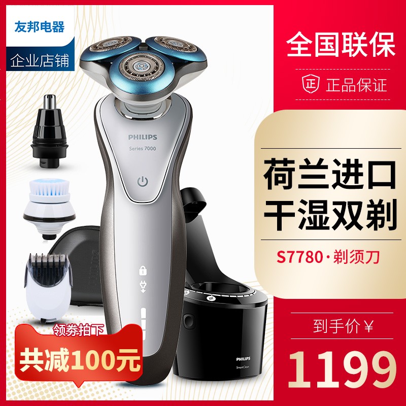 12. 필립스 전기 면도기 S7000 남성 충전식 세척 면도기 S7310 네덜란드어 정품 정통, 내셔널 백 UNPROFOR 가방 2 개 선물 4 개 발송 S7740
